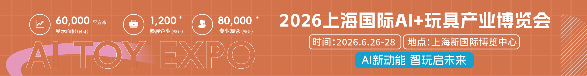 2026上海国际AI+玩具产业博览会应势而生,以“AI赋能,智启新玩“为核心,聚焦AI技术与玩 具产业的深度融合,打造集“产品展示、技术交流、资源对接、趋势发布”于一体的行业顶级盛会。 本届展会将携手中国儿童产业博览会实现强强联动,双展资源共享、观众互通,深入挖掘AI玩具 赛道的新机遇,更积极探索“科技+儿童产业”的跨界创新,为海内外企业构建高效的B B对接平 台,推动行业在创新中实现“加速跑”。我们始终秉持“持续进化、多元赋能”的理念,深耕AI玩具细 分领域,挖掘“教育智能化、互动场景化、技术轻量化、环保可持续”四大核心方向,探索未来玩具 产业的更多可能性,为行业注入源源不断的创新活力。